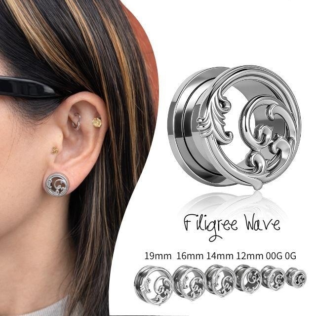 ボディピアス 0G 00G フィリグリーウェーブ ステンレス フレッシュトンネル 拡張ピアス