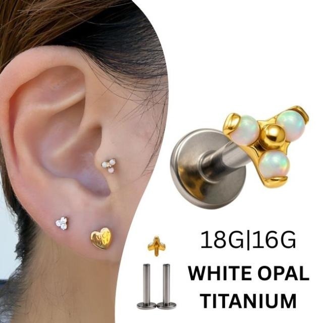 【素材】 ・ASTM F-136 TI6AL4V ELI TITANIUM(バーベル) ・シンセティックオパール/チタンにゴールドPVD(パーツ) 【サイズ】 ・ゲージサイズ18G/16Gから選べます ・ラブレット(内径)サイズ5mm,6mm,7mm,8mm,10mmから選べます ・デザインサイズ約3.6mm 【特徴】 ・シンセティックオパールは、天然オパールと同じ成分構造で人工オパールですが、見た目はほぼ同じです。天然オパールのような幻想的な色合いで普段使いにも適した高品質な人工オパールです。台座とバーベルの素材は医療用グレードの ASTM F-136 Ti6Al4V ELI TITANIUM(純チタン) を使用。 金属アレルギーの方でも安心して着用できます。 16G・18G の2サイズ展開で、アウターコンク・ヘリックス・インナーコンク・トラガス・耳たぶなど、 さまざまな部位に装着可能。※別売りのツールがあると不器用な方や入れにくい部位でもスムーズにホールに入りオススメです。 ※ロブや軟骨の平均シャフトサイズは4mm~6mmです。あくまでも平均サイズなので参考にして下さい。 【注意】 ・写真はできる限り現品を再現するよう心がけておりますが、お客様のモニター環境により商品のイメージと異なる場合がございます。ご了承ください。※1個売りです。