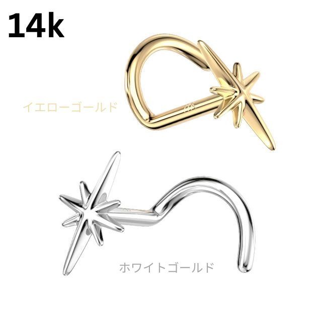 14K 鼻ピアス 14金ホワイトゴールド イエローゴールド 20G シャインスター ノーストリル ノーズスクリュー つけっぱなし