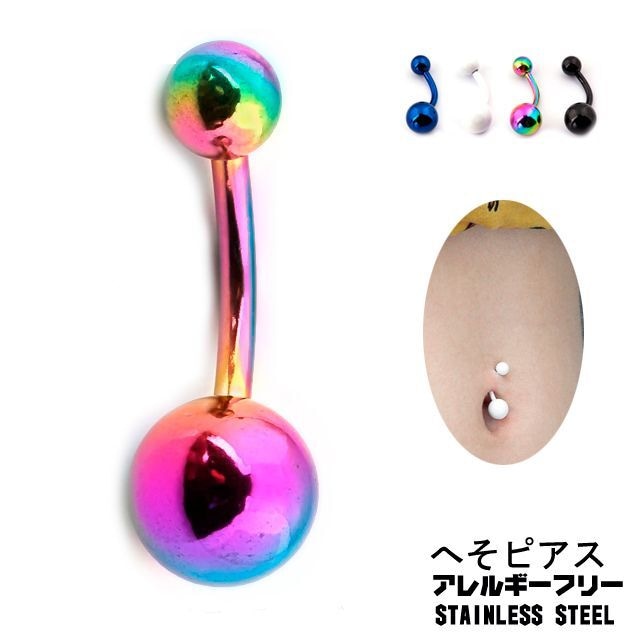 へそピアス 14G 全4色 Anodized&エナメルコーティング へそぴ ボディピアス ロブ