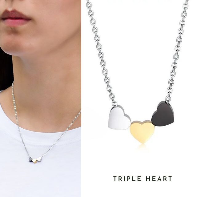 ステンレス ネックレス レディース 3つの ハート 316L サージカルステンレス プレゼント ギフト 金属アレルギー対応 つけっぱなし
