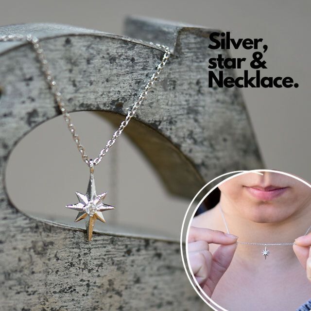 【素材】 ・brass(真鍮) 【サイズ】 ・チェーン長さ約43cm ・デザインサイズ約15.5mm×9mm ・あずきチェーン幅約1mm 【特徴】 ・人気のスターデザインは、真ん中にクリスタルジルコニアが入りアクセントになってとっても綺麗です。シルバーカラーのネックレスなのでどんなコーデにも合わせやすくオススメです。 ネックレスがあるだけでコーデが華やかに決まるので1個は持っていたいアイテムです。 【注意】 ・写真はできる限り現品を再現するよう心がけておりますが、お客様のモニター環境に より商品のイメージと異なる場合がございます。ご了承ください。 ※1個売りです。