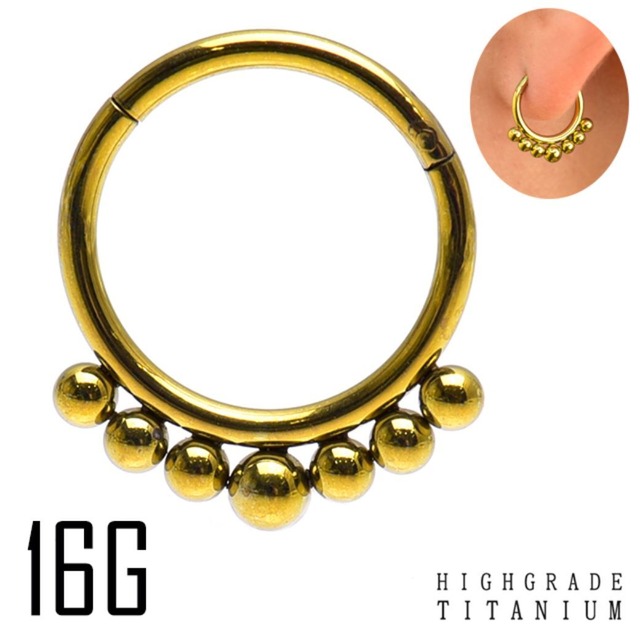 ワンタッチピアス 16G 金属アレルギー対応 アンティーク ゴールド エスニック アジアン 7ball 簡単ワンタッチ クリッカーピアス セプタム ダイス ロブ 軟骨 チタンピアス ボディピアス