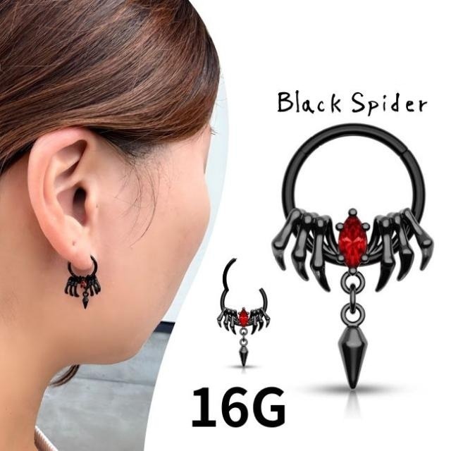 ボディピアス 16G ブラックスパイダー ハロウィンピアス ワンタッチピアス リングピアス ヘリックス セプタムピアス ロブ ブラックピアス