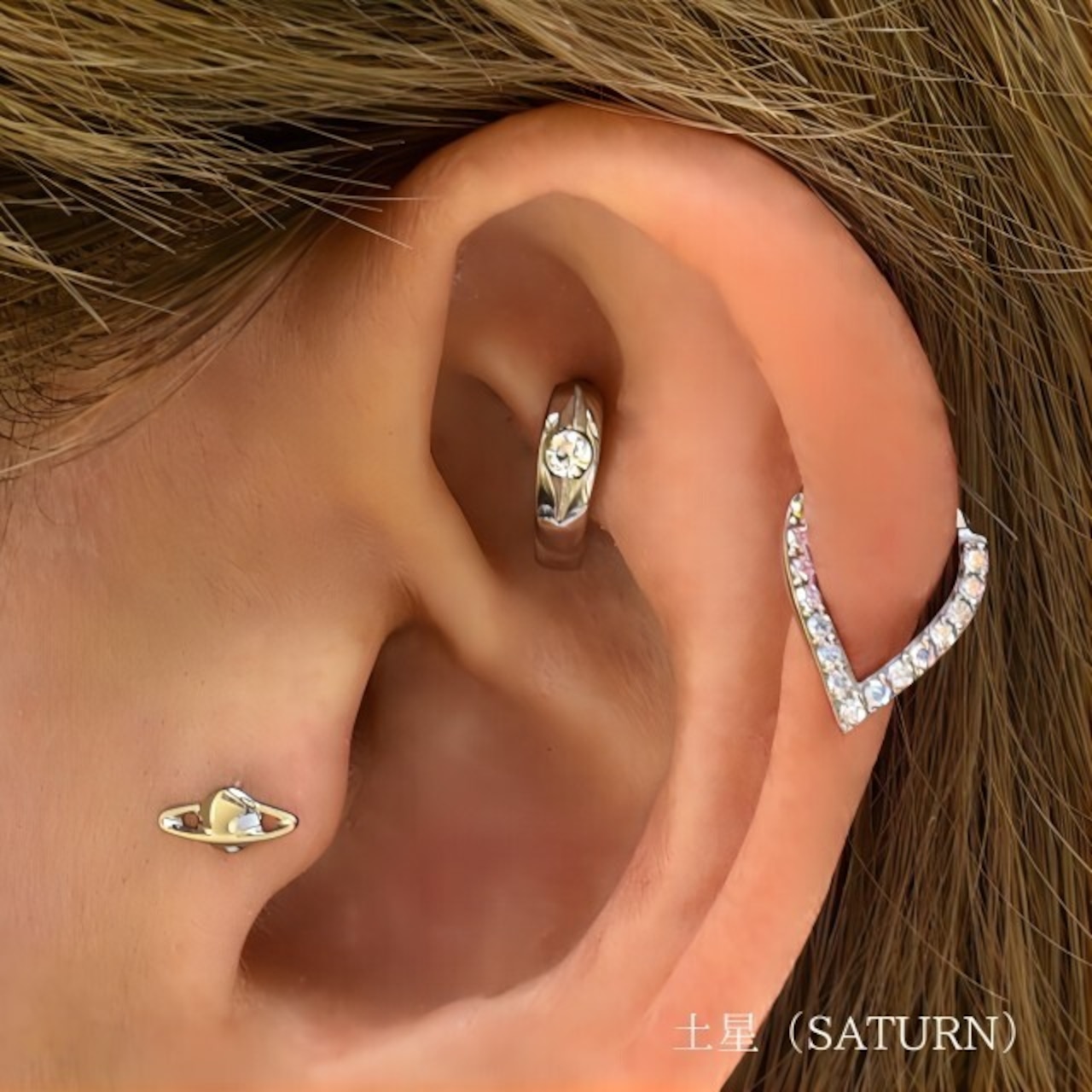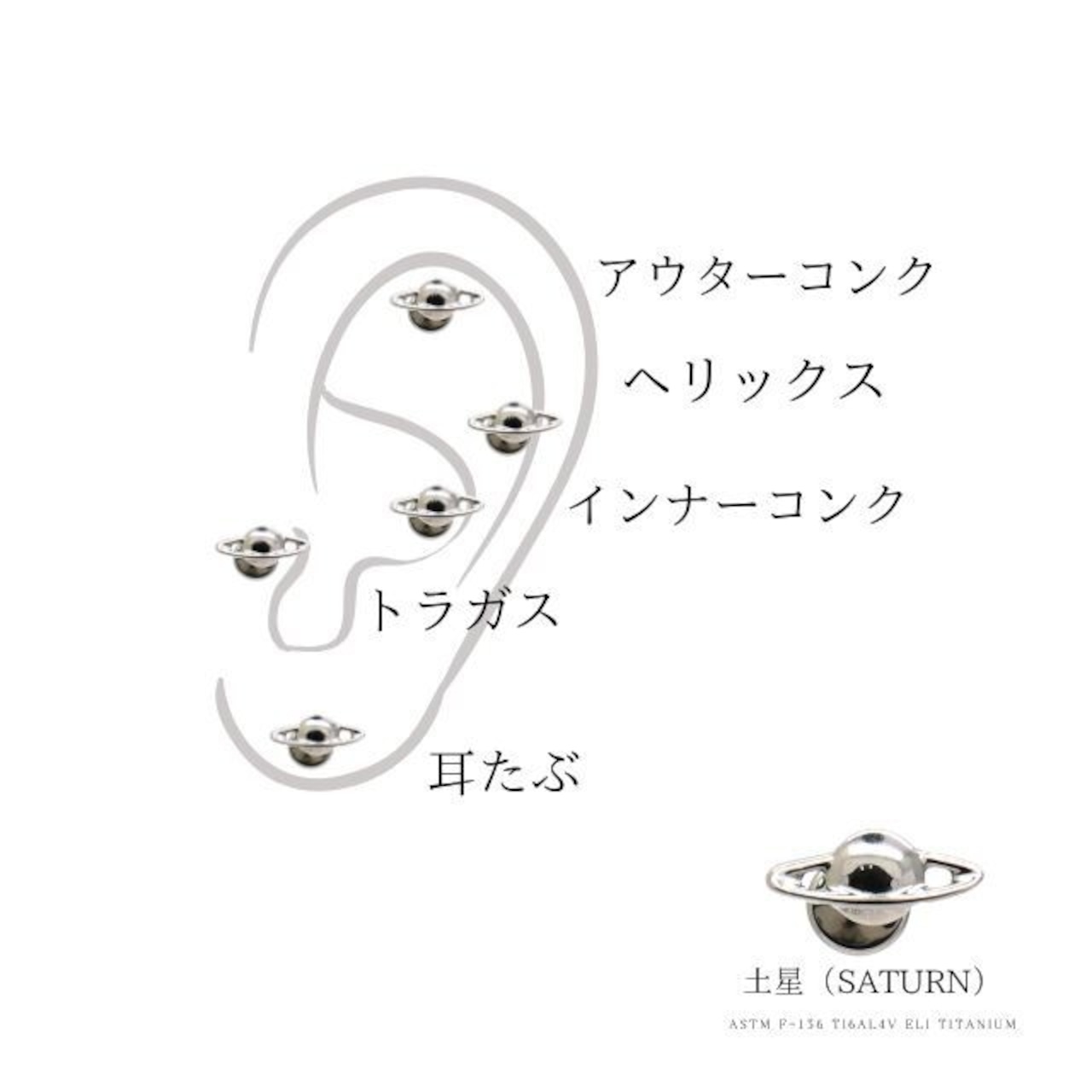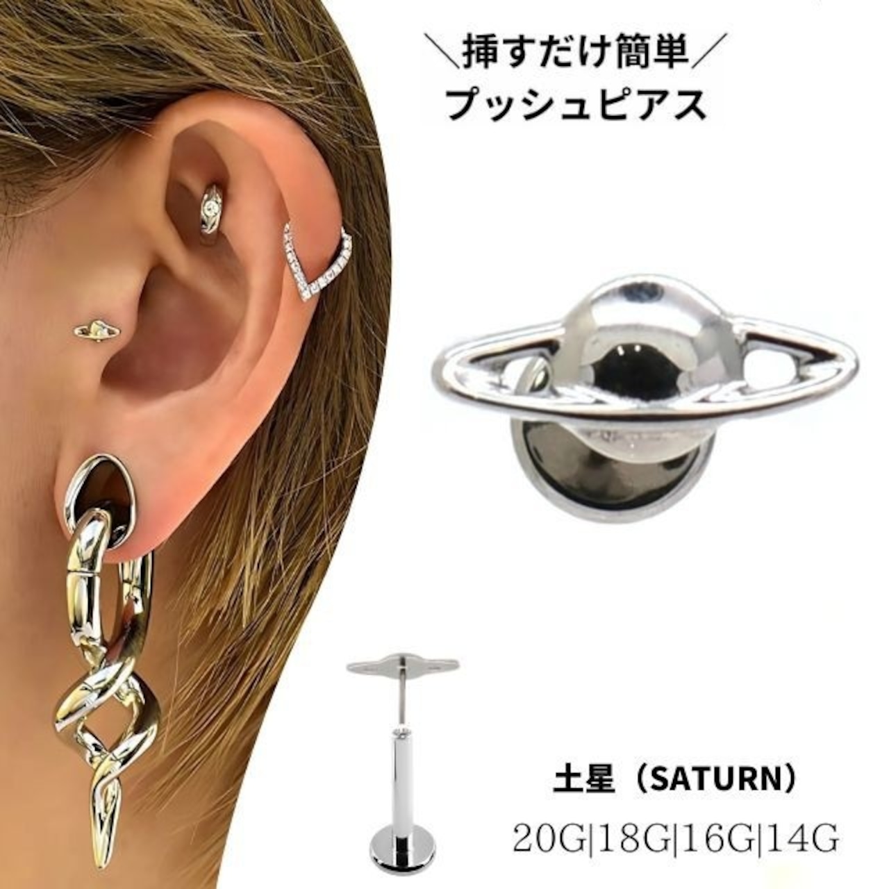 プッシュピアス 20G 18G 16G 14G 土星 宇宙 惑星 Saturn チタンピアス 金属アレルギー対応 つけっぱなし ラブレットスタッド ボディピアス 軟骨ピアス トラガスピアス