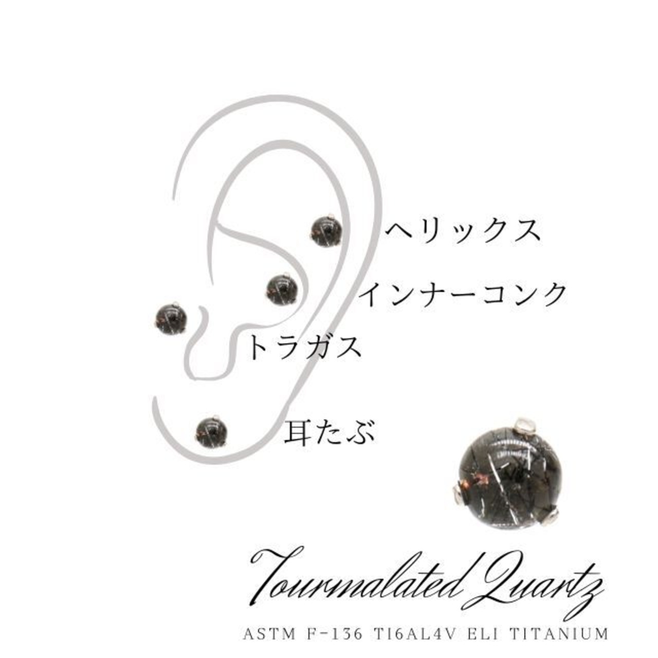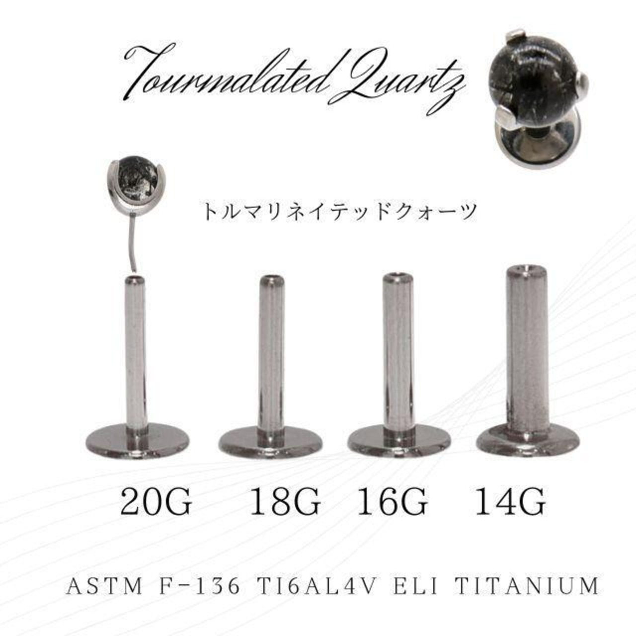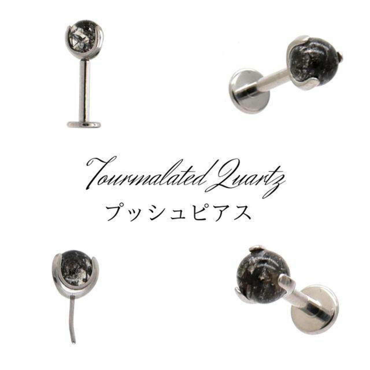 プッシュピアス 20G 18G 16G 14G トルマリンネイテッドクォーツ 天然石ピアス 金属アレルギー対応 つけっぱなし ラブレットスタッド ボディピアス 軟骨ピアス トラガスピアス