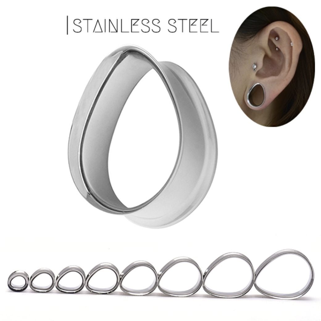 ・ティアドロップの形がすごくオシャレ。シンプルなので他のピアスとも合わせやすく使いやすいです。フレアピアスですが丸ではないので普通のダブルフレアよりも入りやすいです。安いので1個は持っていても損はないですよ。※耳の装着画像ピアスはサイズ00Gと16mmです。
