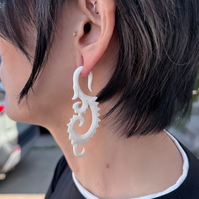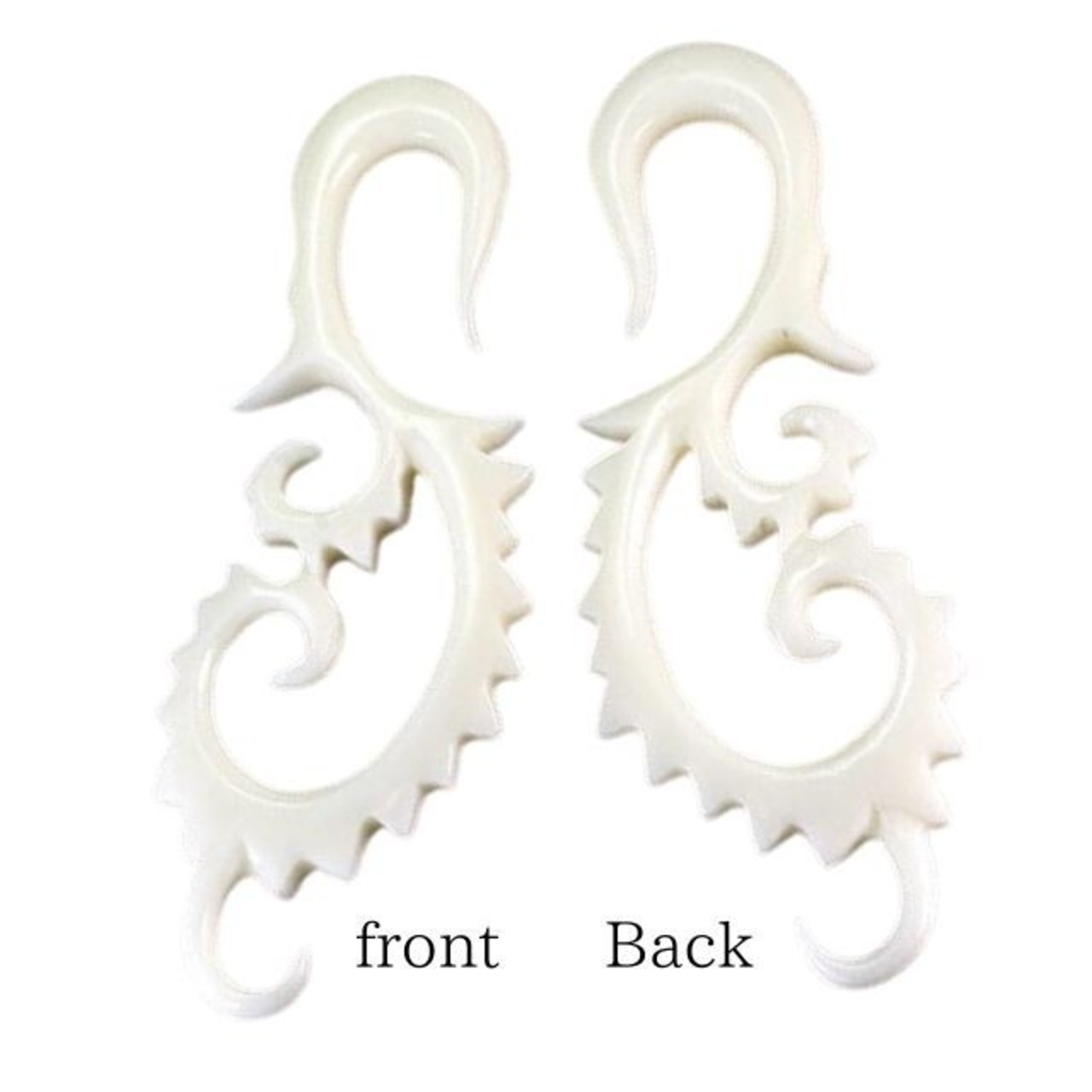 ・ボーンカービングは動物の骨を素材に彫刻を施す工芸品です。ポリネシアの文化圏のマオリ族の間では、自然との調和や、彼らの守り神を象徴するものとしてボーンカービングを身につけることでそのパワーに願いを込めてお守りとしての意味合いも持ちます。ハンドメイドで作られた白い骨がオシャレなデザインでとても素敵です。フロントとバックデザインは、どちらも同じです。