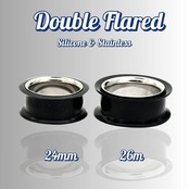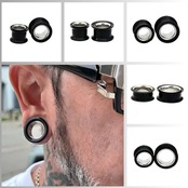 ・※シリコンの厚みがある分、ゲージサイズよりも1mmほど余裕がある方にオススメです。ゲージサイズピッタリだと入りませんのでお気をつけ下さい。柔軟性と快適性を兼ね備えたブラックシリコン製のピアスに、光沢感のあるステンレス製のピアスをインサート装着した状態のアイテムです。シリコンは耳にやさしく、長時間の着用でもストレスが少ない素材でステンレススリーブが内側に装着されており、デザインのアクセントにもなっています。ステンレスピアスは、シングルフレアピアスを使用しており、飽きたら外して別々でも使え2WAYで楽しめます。