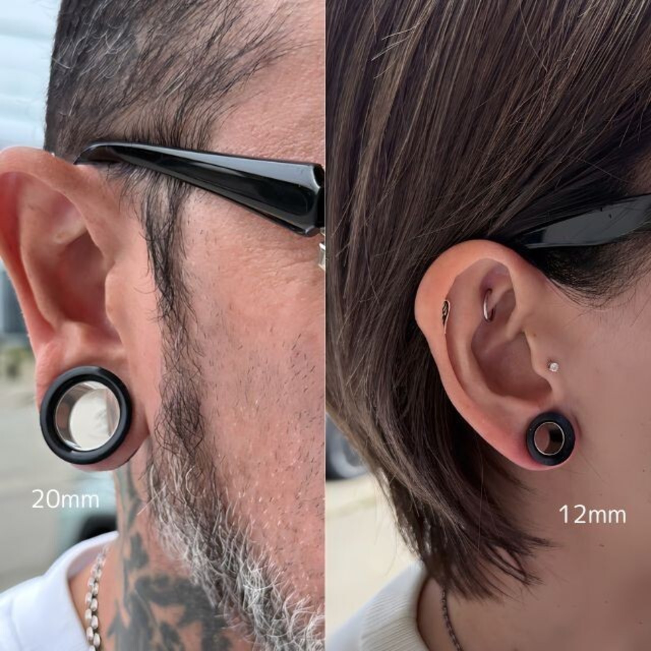 ・※シリコンの厚みがある分、ゲージサイズよりも1~1.5mm(※ゲージサイズ26mmのみ2mmほど大きい)ほど余裕がある方にオススメです。ゲージサイズピッタリだと入りませんのでお気をつけ下さい。柔軟性と快適性を兼ね備えたブラックシリコン製のピアスに、光沢感のあるステンレス製のピアスをインサート装着した状態のアイテムです。シリコンは耳にやさしく、長時間の着用でもストレスが少ない素材でステンレススリーブが内側に装着されており、デザインのアクセントにもなっています。ステンレスピアスは、シングルフレアピアスを使用しており、飽きたら外して別々でも使え2WAYで楽しめます。