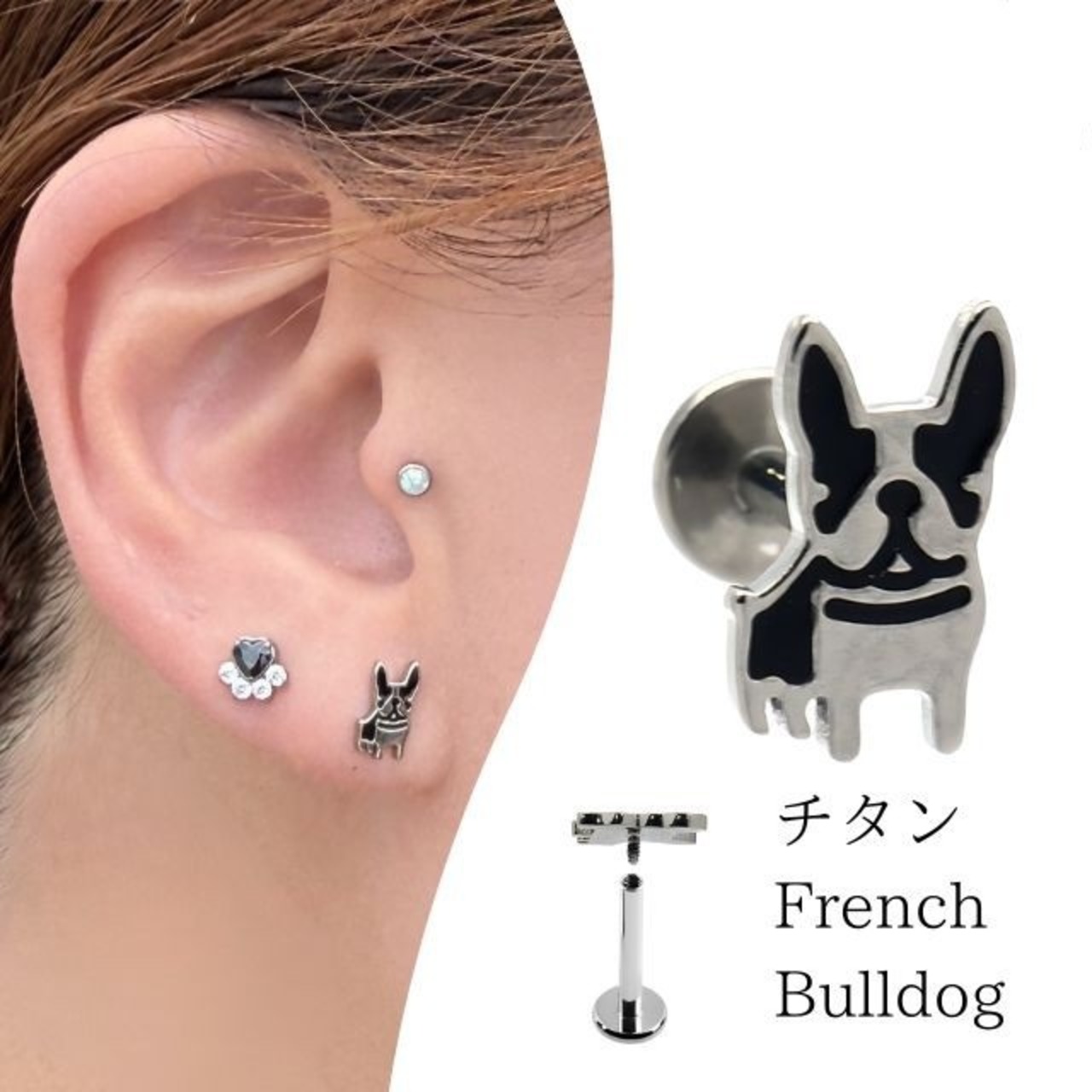軟骨ピアス 18G 16G フレンチブルドッグ インターナル ラブレット 金属アレルギー対応 チタンピアス つけっぱなし ロブ ヘリックス トラガス ボディピアス