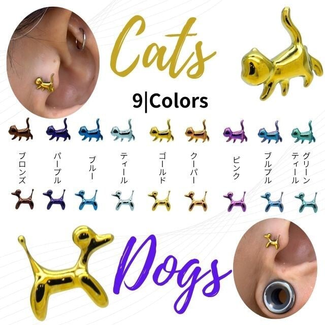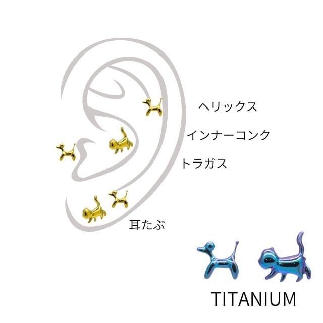 プッシュピアス ラブレット 20G 18G 16G 14G 全9色 CAT Dog 猫ピアス 犬ピアス チタンピアス 金属アレルギー対応 ラブレットスタッド ボディピアス | BONshape ボディピアス専門店
