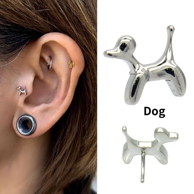 プッシュピアス ラブレット 20G 18G 16G 14G CAT Dog プードル 猫ピアス 犬ピアス チタンピアス 金属アレルギー対応 ラブレットスタッド ボディピアス | BONshape ボディピアス専門店