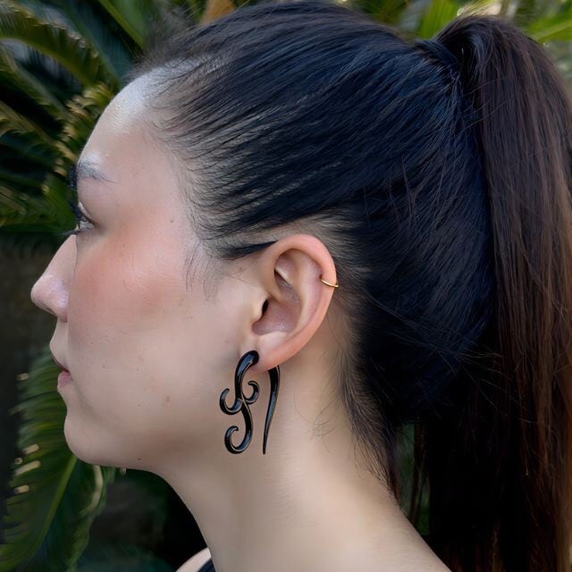 ラージゲージ風デザインが好きだけどホール拡張はちょっと…という方にぴったりです。ユニセックスで使えるアートピースのようなアクセサリーはシンプルコーデのアクセントにも◎シャフトが見えにくい構造になっており、より自然な着け心地とビジュアルを演出します。