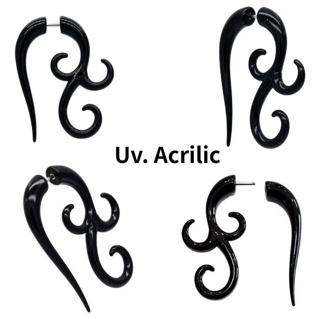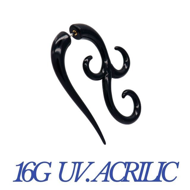 実際は16G(約1.2mm)で、通常のピアスホールにも着けられるフェイクスタイルピアスです。個性的なスパイラルデザインが耳元でしっかりと存在感を放ち、アクリル素材だからとっても軽量。ストレスフリーな着け心地で、長時間の使用も快適です。