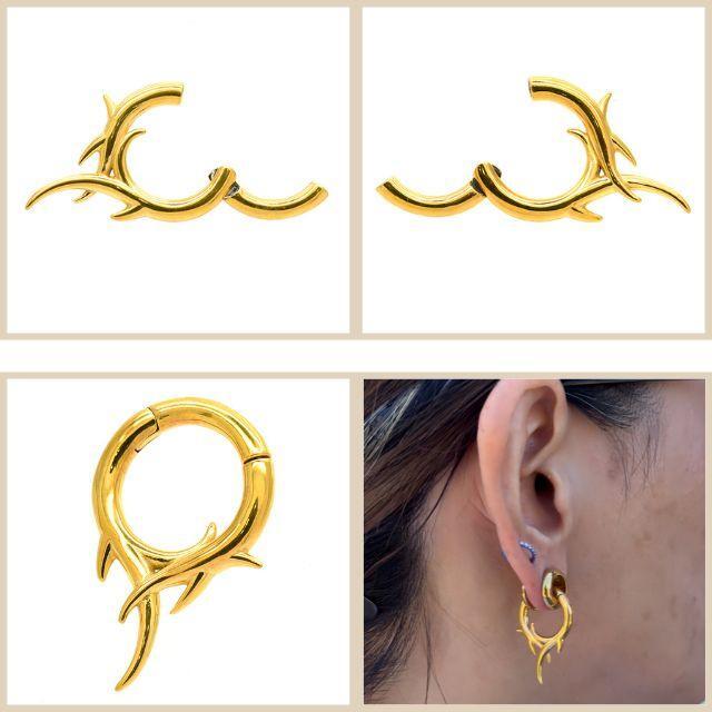 ・インパクトあるスパイクデザインで、耳元に唯一無二の存在感を。力いらずで簡単装着!接合部分はマグネット(磁石)式なので、ワンタッチで「カチッ」と着けられます。