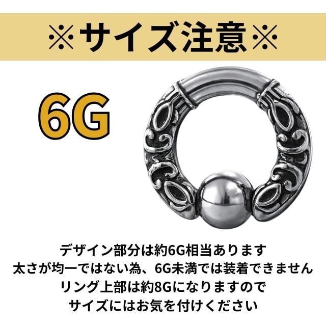 なお、デザイン(装飾)部分は箇所により太さが異なり、リング上部は約8G相当の太さとなっております。太さは均一ではございませんので、お気を付けください。