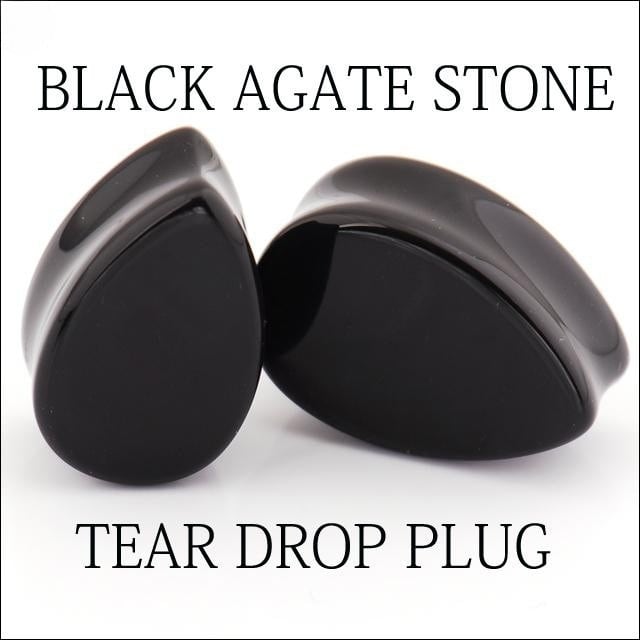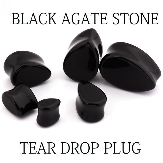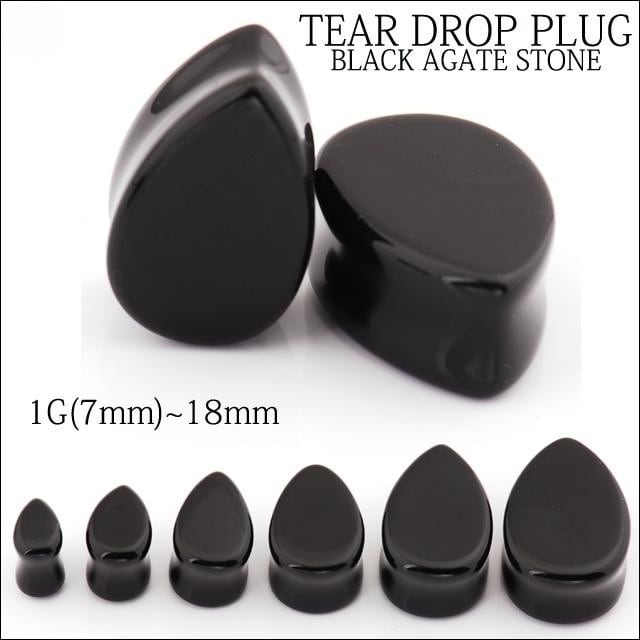ボディピアス 18mm ティアドロップ 天然石ピアス ブラック アゲート まとまりを強くする パワーストーン ロブ 拡張ピアス
