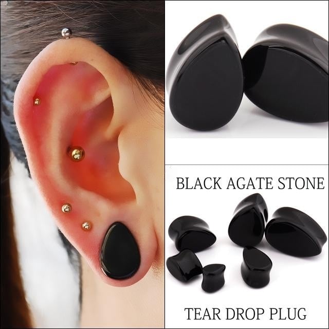 ・結びつきを強めグループなどのまとまりを強くする為に有益な石とされているアゲート。ティアドロップの形をしていて、とってもオシャレです。外れにくいように少しフレアになっているため、フレアはゲージサイズより1mmほど大きいです。最近拡張した方やまだホールが安定していない方は入りにくいです。※耳の装着画像は14mm&18mmです。