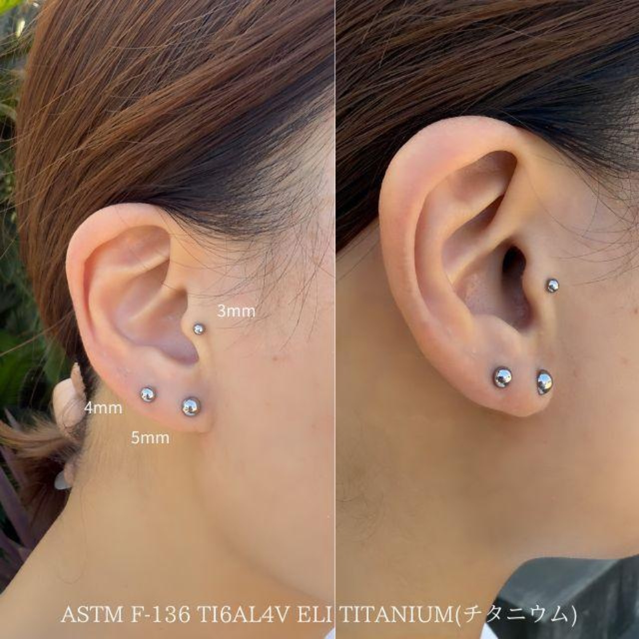 舌ピアス・アウターコンク・ヘリックス・インナーコンク・トラガス・耳たぶなど、さまざまな部位に装着可能。