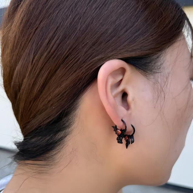 耳たぶ・ヘリックス・セプタム(鼻ピアス)にも使える3wayタイプで、ハロウィンやゴシックコーデにもぴったりです。ワンタッチで開閉できるのでキャッチを無くすことなく楽に装着できます。