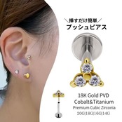 ボディピアス プッシュピアス 20G 18G 16G 14G 18K Gold PVD トリニティ チタンピアス 金属アレルギー対応 ラブレットスタッド 鼻ピアス トラガス メデューサ | BONshape ボディピアス専門店