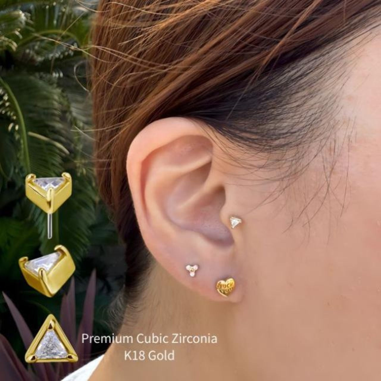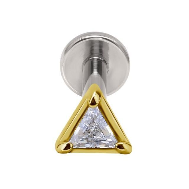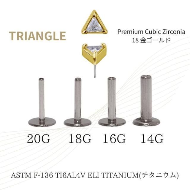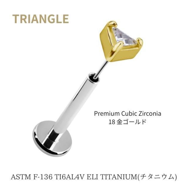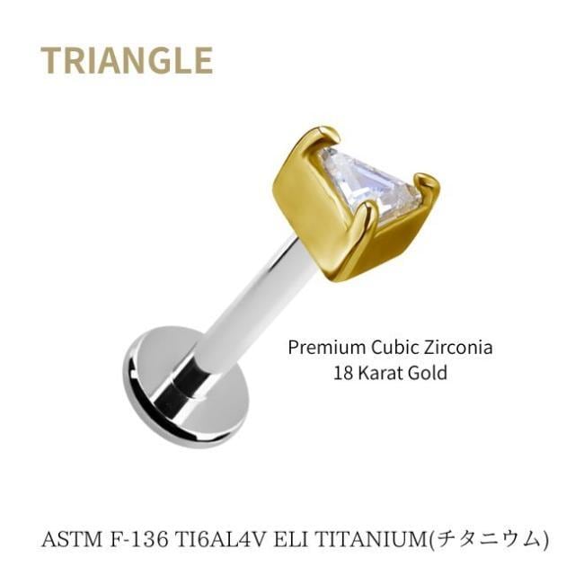 18金ゴールド ピアス プレミアムジルコニア トライアングル プッシュピアス 20G 18G 16G 14G 18金ピアス チタンピアス 金属アレルギー対応 ラブレットスタッド ボディピアス ロブ 軟骨ピアス