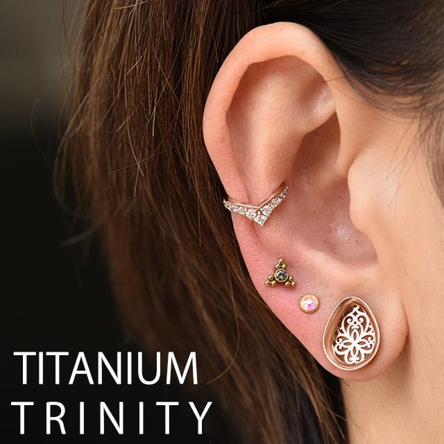 金属アレルギー対応 18G 16G 14G 全4色 GOLD ジルコニア トリニティ インターナルラブレット チタンピアス ヘリックス インナーコンク アウターコンク ロブ 軟骨ピアス | BONshape ボディピアス専門店