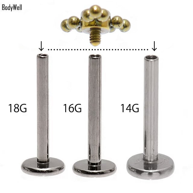 ・人気のトリニティデザインはジルコニアの輝きがアクセントになって綺麗です。台座がゴールドカラーなのでよりオシャレ。台座とラブレット部分は、医療用タイタニアム(チタン)で丈夫で軽く相当なアレルギーでない限りアレルギーの方でも安心してお使い頂けます。 ※ラブレットのディスクサイズはメーカーの入荷時期によりばらつきがあります、あらかじめご了承下さい。また18Gと16Gのネジサイズは同じです。