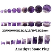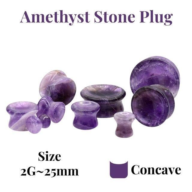 ・高貴な紫色が魅力のアメジスト天然石プラグピアスです。表面は緩やかな凹型(コンケーブ)で立体感のあるデザインに。透明感のある艶やかな質感と、ストーンならではのひんやりとした装着感が特徴です。