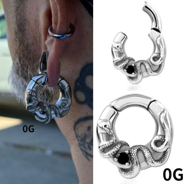 ・存在感バツグンのスネークデザインが目を惹く、ワンタッチ式のボディピアスです。