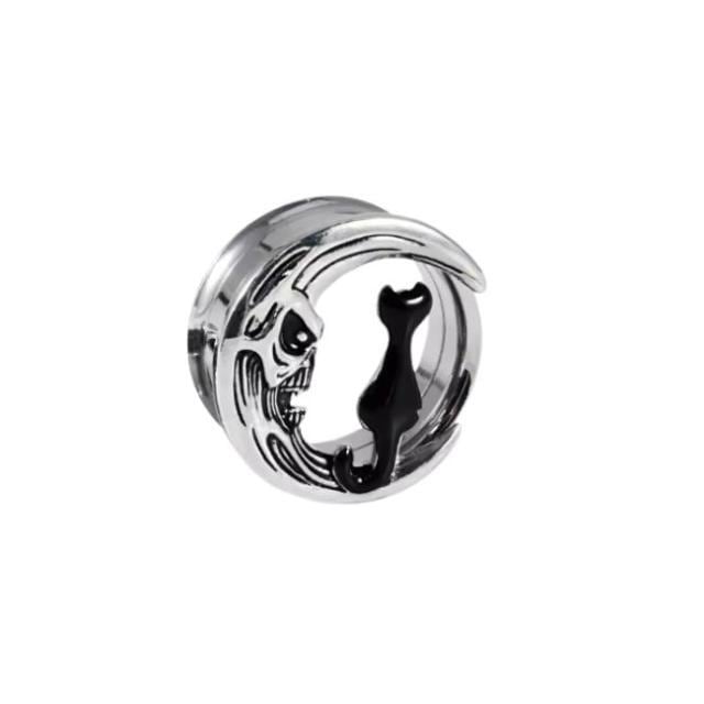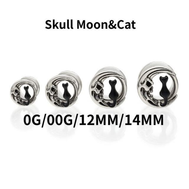 ボディピアス 0G 00G 月とスカルと黒猫 インターナルダブルフレア ステンレスピアス 拡張ピアス