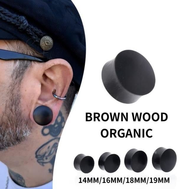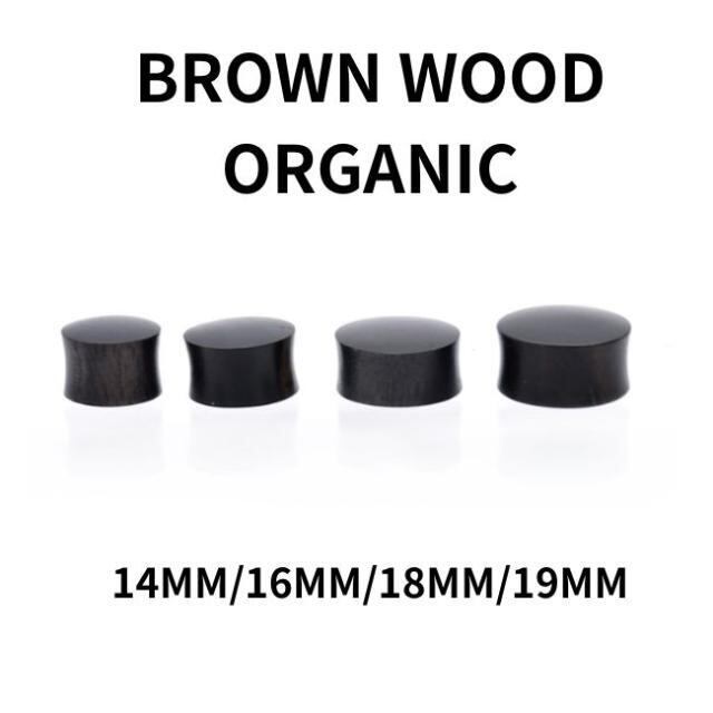 ボディピアス 14mm 16mm 18mm 19mm HARD ダークブラウン ウッド ダブルフレア プラグピアス 天然素材 拡張ピアス