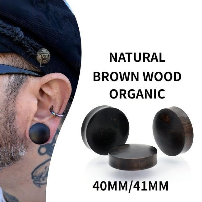ボディピアス 40mm 41mm HARD ダークブラウン ウッド ダブルフレア プラグピアス 天然素材 拡張ピアス