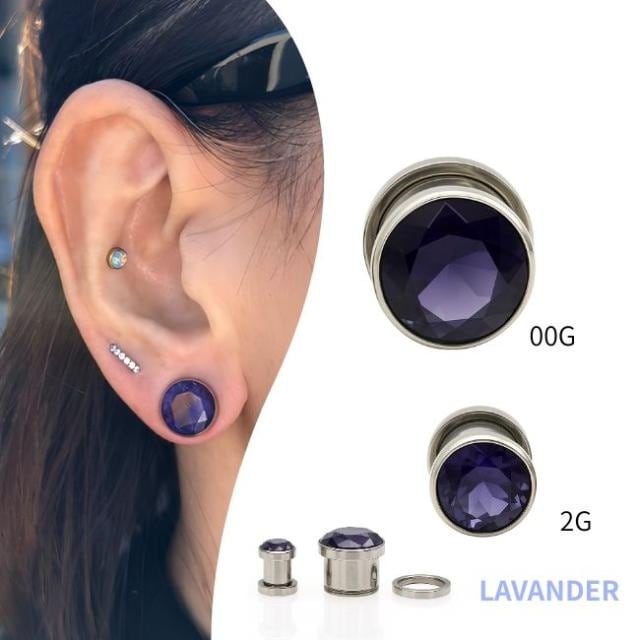 ボディピアス 2G 00G 綺麗に輝く ラベンダー ジルコニアピアス プラグピアス 拡張ピアス ステンレスピアス