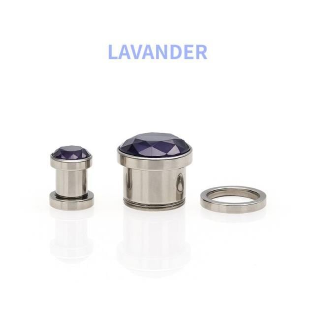 ・上品な透明感と高級感を兼ね備えた、ラベンダーカラーのキュービックジルコニアを使用したプラグピアス。光を受けるたびに繊細に輝き、耳元に華やかさをプラスします。
