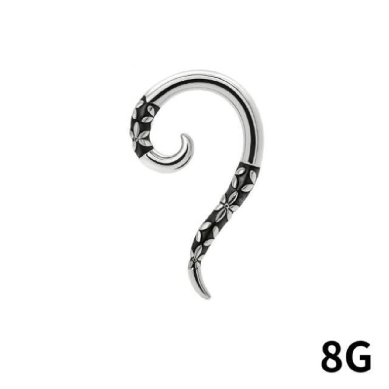 ・耳元でしなやかに躍るカーブシルエットに、フラワーモチーフを贅沢に彫り込んだフックタイプのボディピアス。