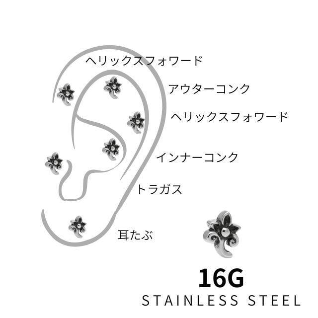 ボディピアス 16G フルール 花ピアス ストレート ロブ 軟骨ピアス ヘリックス アウターコンク インナーコンク トラガス