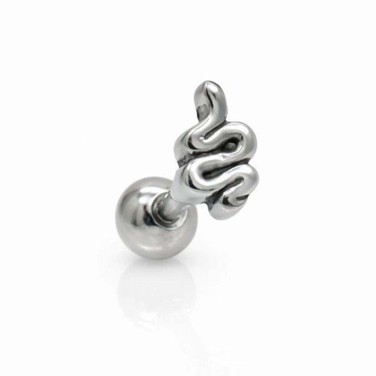 ・繊細にうねる小さなスネイク(蛇)モチーフが印象的な、ミニサイズのボディピアスです。