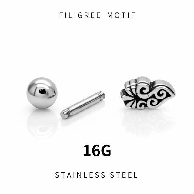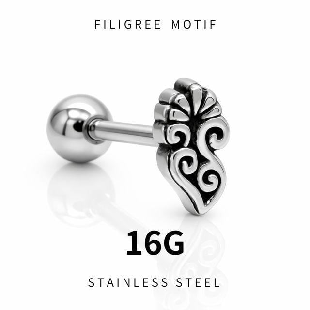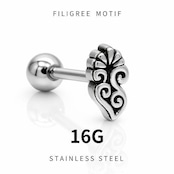 ・繊細な彫り込みが美しい、ゴシック調リーフ(葉)モチーフのミニサイズボディピアスです。