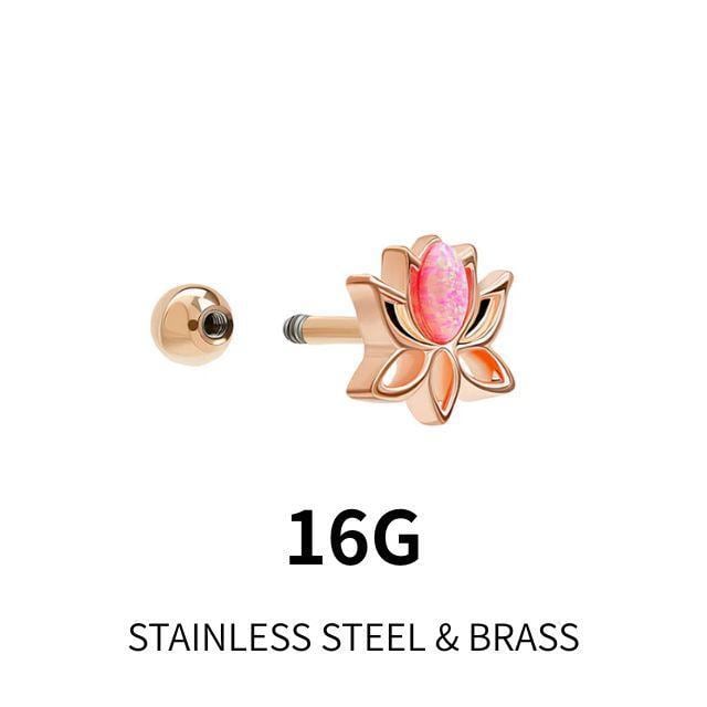 ボディピアス 16G 蓮ピアス Lotus ピンクゴールド ストレート ロブ 軟骨ピアス ヘリックス アウターコンク インナーコンク