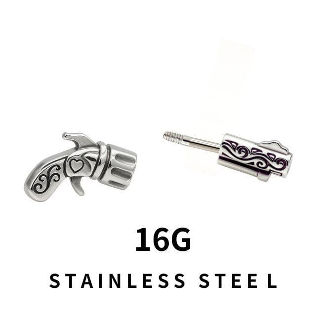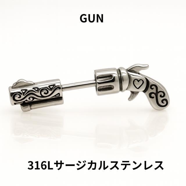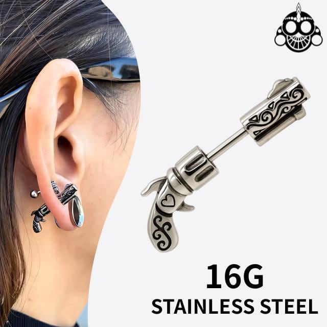 ボディピアス 16G 拳銃 ピストル ストレート ロブ 軟骨ピアス ヘリックス アウターコンク インナーコンク