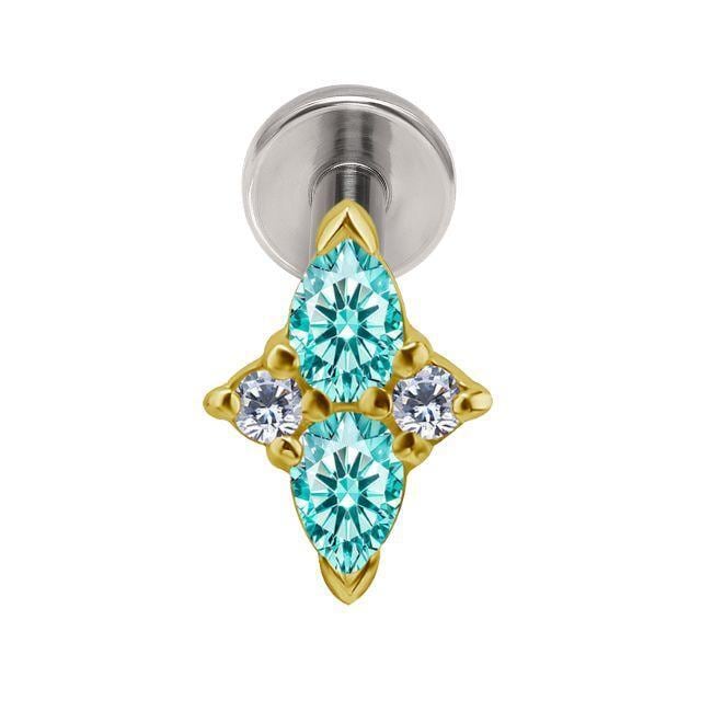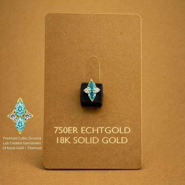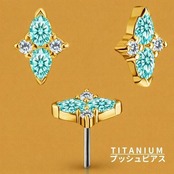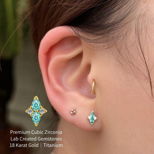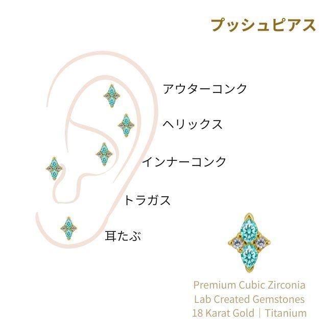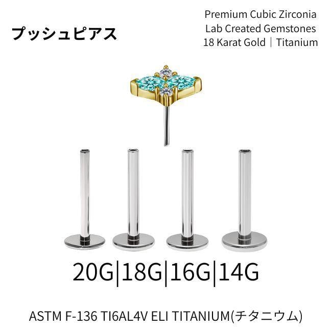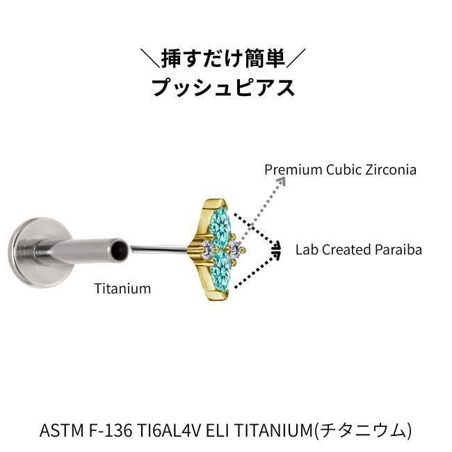 18K 18金ゴールド プッシュピアス 20G 18G 16G 14G クロス ネオンブルー ラボパライバ チタンピアス 金属アレルギー対応 ラブレットスタッズ ボディピアス
