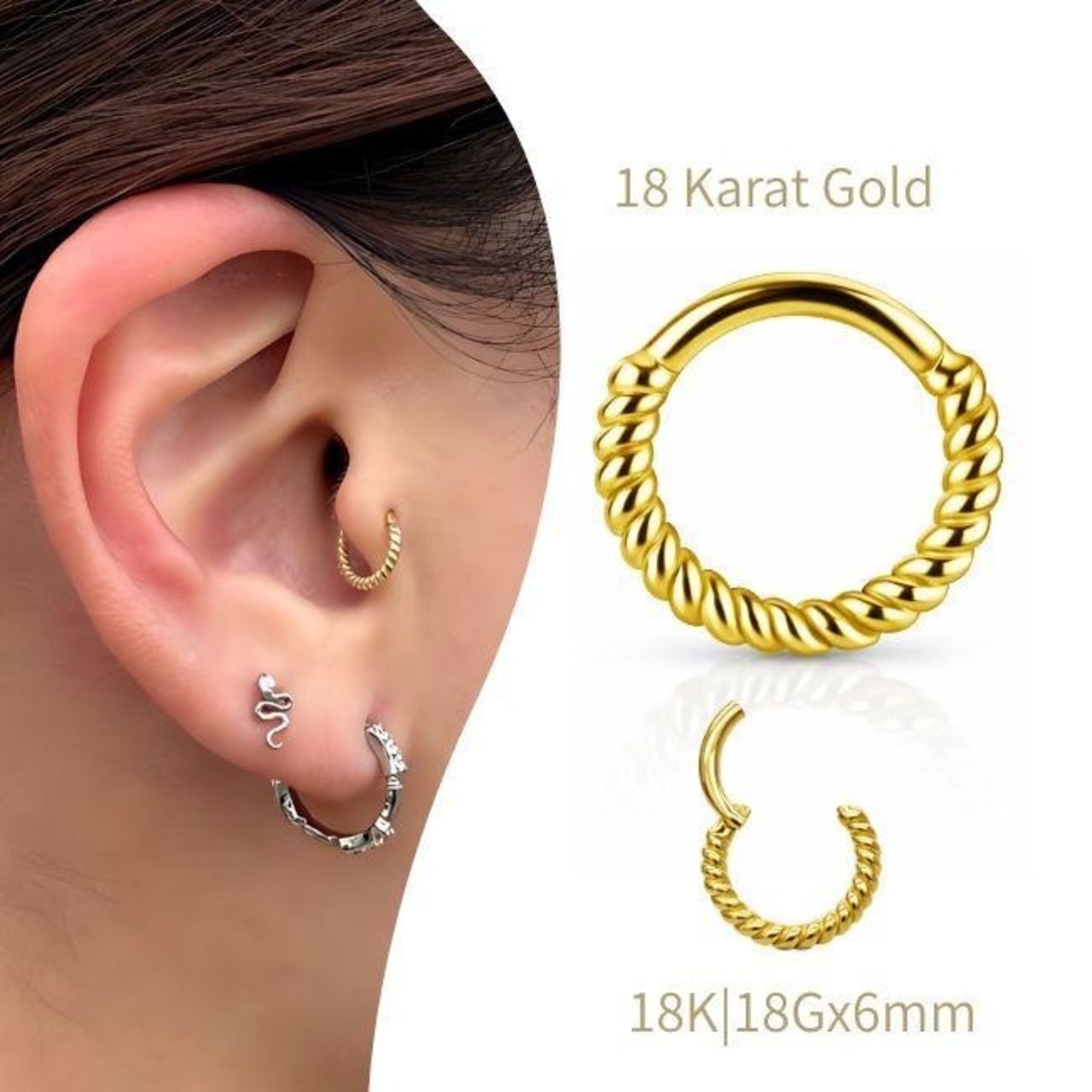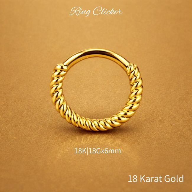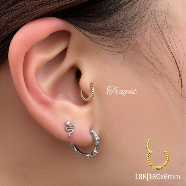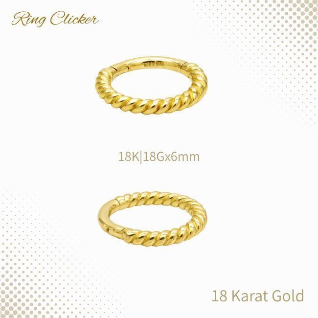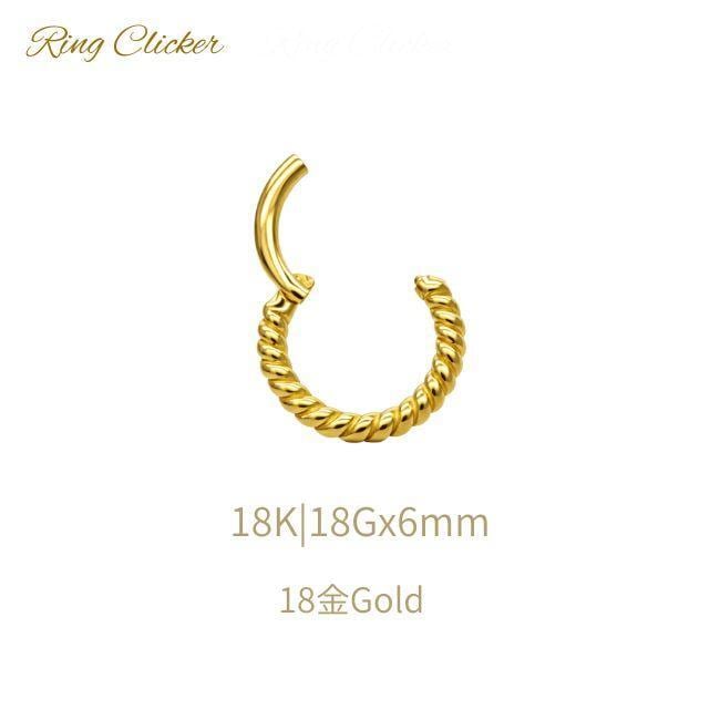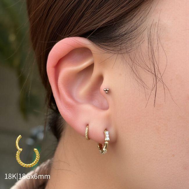 K18 18g 18金ゴールド 内径6mm ツイスト ワンタッチピアス 18K セグメントリングピアス クリッカー リングピアス ロブ 軟骨ピアス トラガス ロック