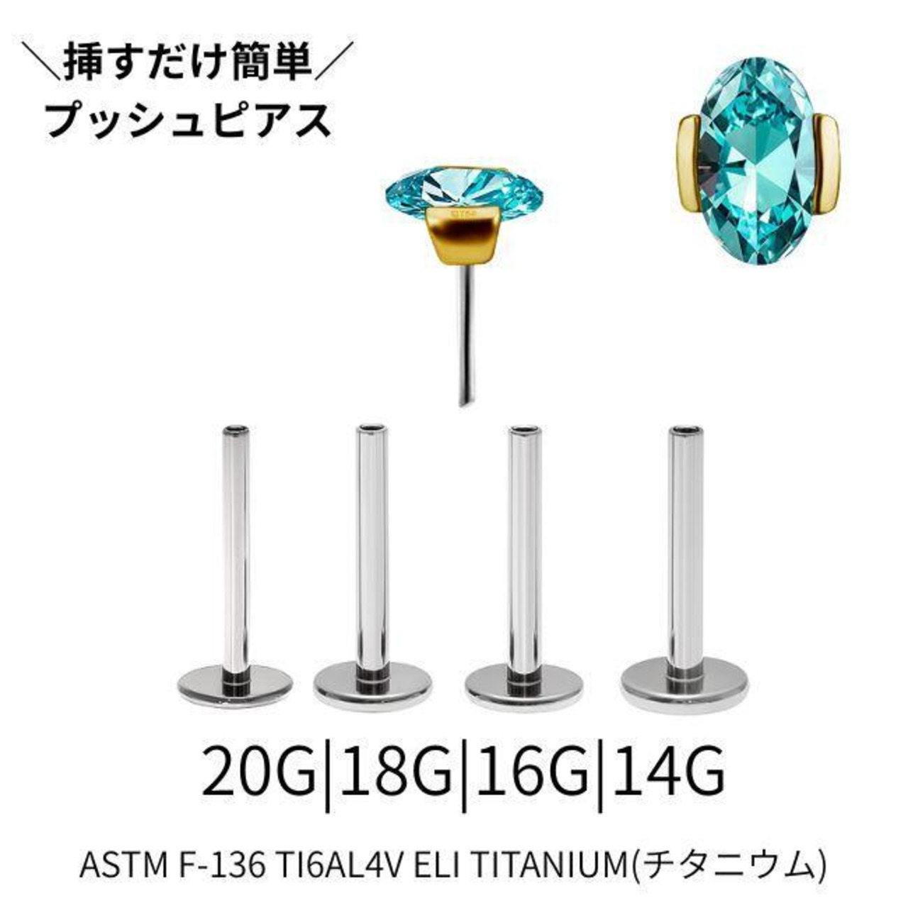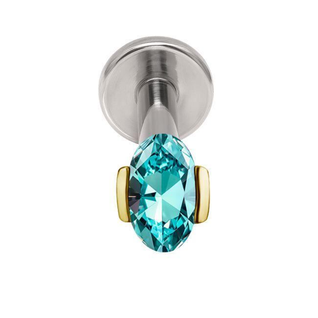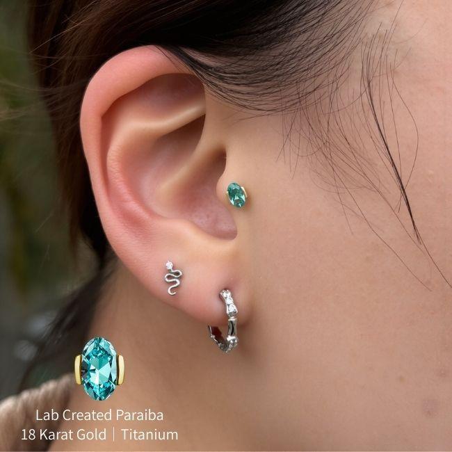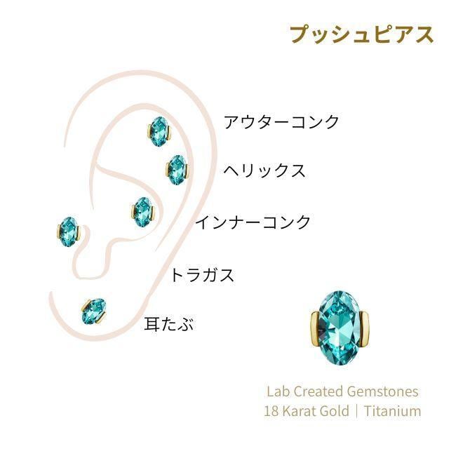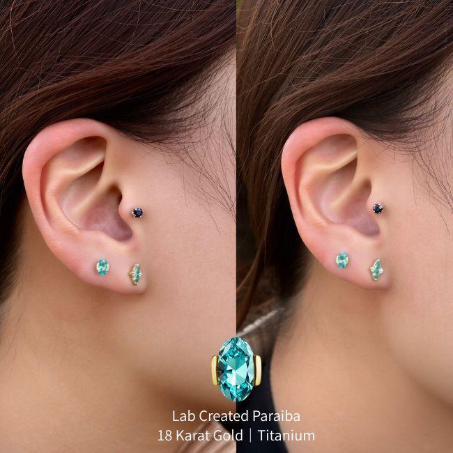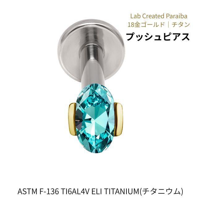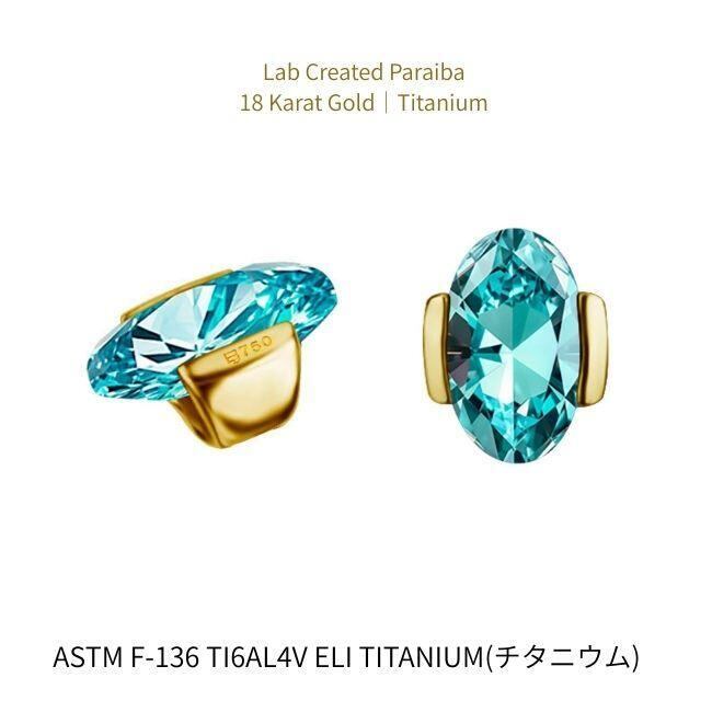 18K 18金ゴールド プッシュピアス 20G 18G 16G 14G ラボパライバ ネオンブルー オーバルカット チタンピアス ラブレットスタッド ボディピアス