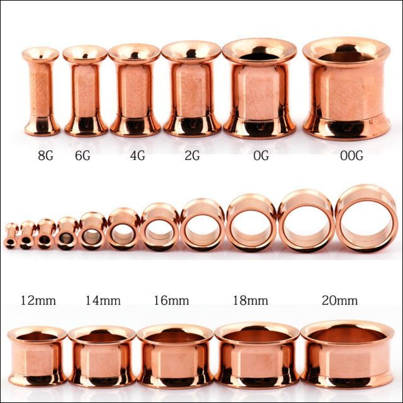 ボディピアス 0G 00G 日本人の肌に相性がいい ハイポリッシュ ピンクゴールド インターナルダブルフレア トンネルピアス 拡張ピアス ロブ