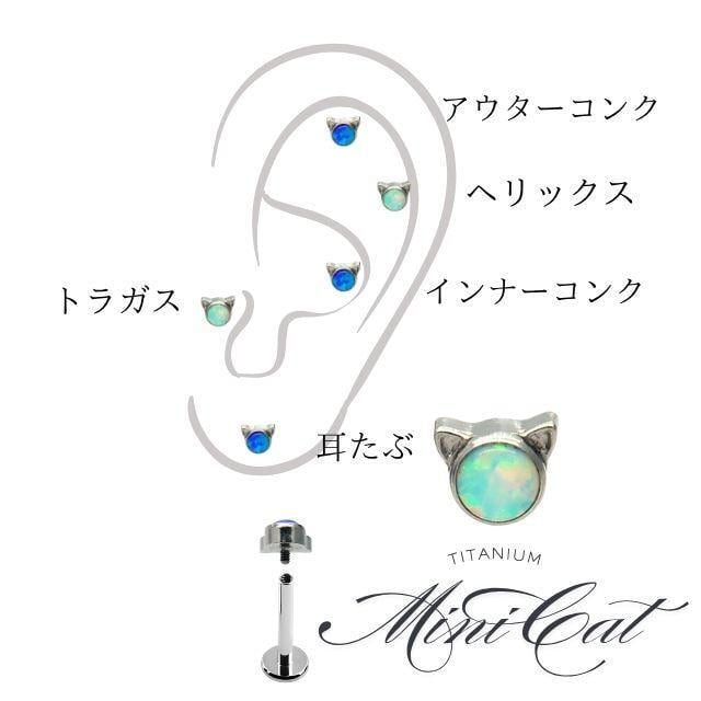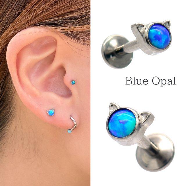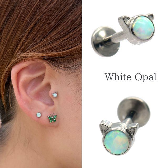 ・キュートな猫モチーフが目を引く可愛いピアスです。2色から選べる、オパールが神秘的で可愛く上品に決まります。素材は医療用グレードのASTM F-136 TI6AL4V ELIチタンを使用しており、金属アレルギーを起こしにくく安心してご使用いただけます。 インターナルネジタイプで着脱しやすく、ロブ・ヘリックス・アウターコンク・インナーコンク・トラガスなどさまざまな軟骨部位に対応。 ※別売りのツールがあるとホールにスムーズに入りオススメです。