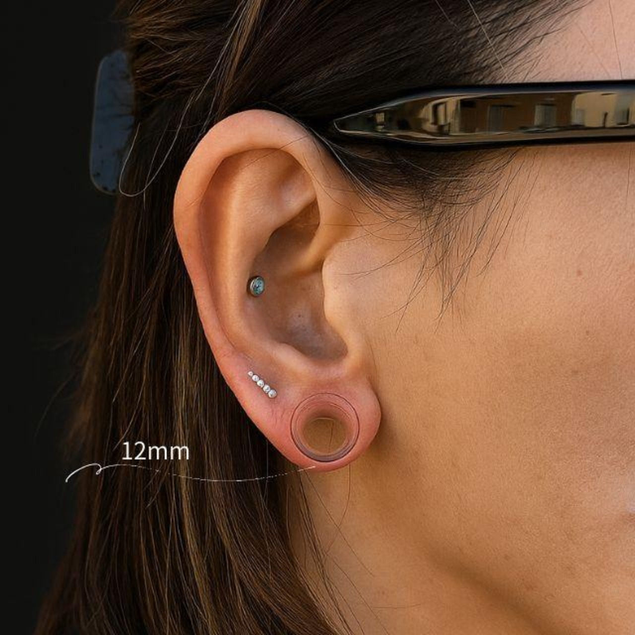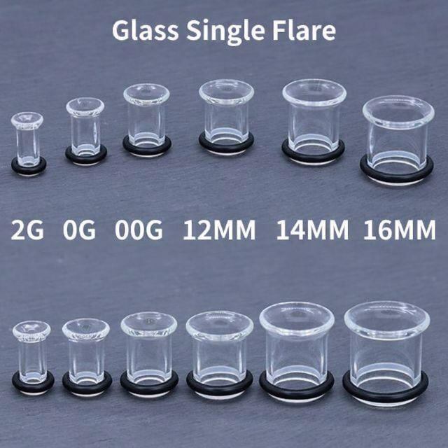 透明ピアス ガラス 14mm 16mm シングルフレア ロブ 軟骨ピアス 強化ガラス 目立たない 透ピ つけっぱなし ボディピアス 金アレ対応