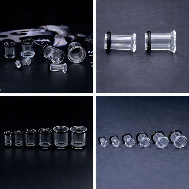 透明ピアス ガラス 00G 12mm シングルフレア ロブ 軟骨ピアス 強化ガラス 目立たない 透ピ つけっぱなし ボディピアス 金アレ対応
