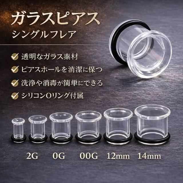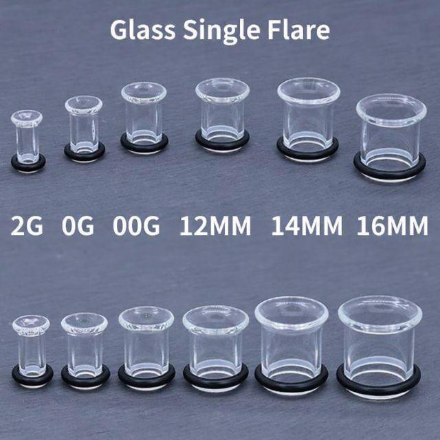 透明ピアス ガラス 2G 0G シングルフレア ロブ 軟骨ピアス 強化ガラス 目立たない 透ピ つけっぱなし ボディピアス 金アレ対応